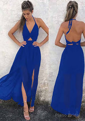 A-line/Princess Halter Sleeveless Ankle-Length Chiffon Prom Dresses With Split
