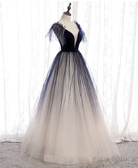 Blue Tulle Long Prom Dress Blue Tulle Formal Dress