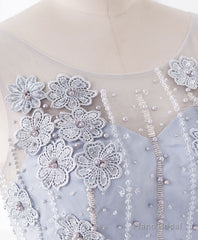 Cute Gray Round Neck Lace Tulle Short Prom Dress, Homecoming Dress