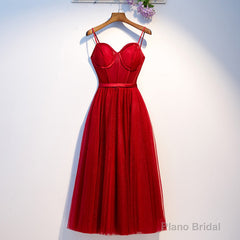 Dark Red Tulle Sweetheart Straps Wedding Party Dress, Red Homecoming Dress Prom Dress