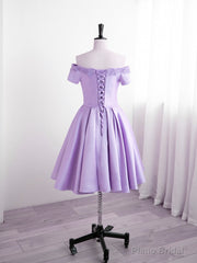 Light Purple Satin Short Party Dress with Lace, Cute Short Homecoming Dress