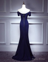 Navy Blue Mermaid Sweetheart Long Evening Dress, Blue Prom Dresses
