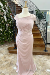 Pink Asymmetrical Mermaid Satin Long Mother of Bride Dresses