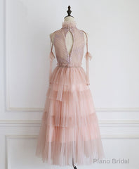 Pink Tulle Lace Prom Dress, Tulle Lace Homecoming Dress