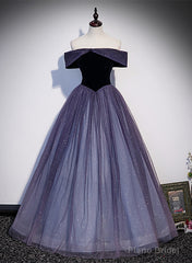 Purple Gradient Tulle Off Shoulder Long Party Dress, A-line Purple Evening Dress Prom Dress