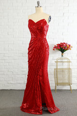 Sheath Sweetheart Red Sequins Formal Prom Dresses with Sequins