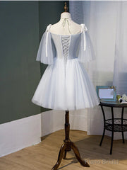 Short Gray Lace Prom Dresses, Short Gray Lace Formal Homecoming Dresses