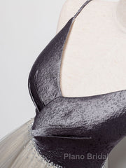 Simple gray v neck tulle long Formal Prom dress, gray tulle formal dress