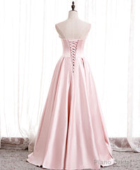 Simple Pink Satin Long Prom Dress, Pink Formal Bridesmaid Dress
