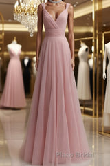 Simple pink tulle long Formal Prom dress pink tulle evening dress