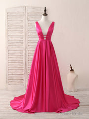 Simple V Neck Satin Long Prom Dress Backless Evening Dress