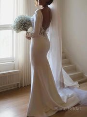 Trumpet/Mermaid Scoop Court Train Stretch Crepe Wedding Dresses With Leg Slit