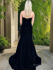 Trumpet/Mermaid Strapless Sweep Train Velvet Evening Dresses