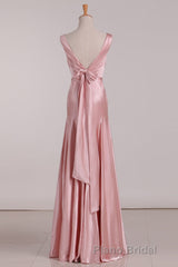 V-Neck Pink Tie Back Mermaid Bridesmaid Dresses