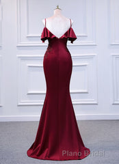 Wine Red Mermaid Sweetheart Straps Long Prom Dresses, Wine Red Formal Prom Dresses