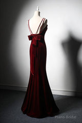 Wine Red Velvet Mermaid Wedding Party Dresses, Wine Red Formal Dresses