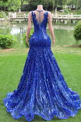 Women Sequined Royal Blue Prom Dresses Sleeveless Cocktail Party Gowns Light Luxury Luxury Evening Dresses