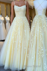 Yellow tulle lace long Formal Prom dress, yellow tulle lace formal dress